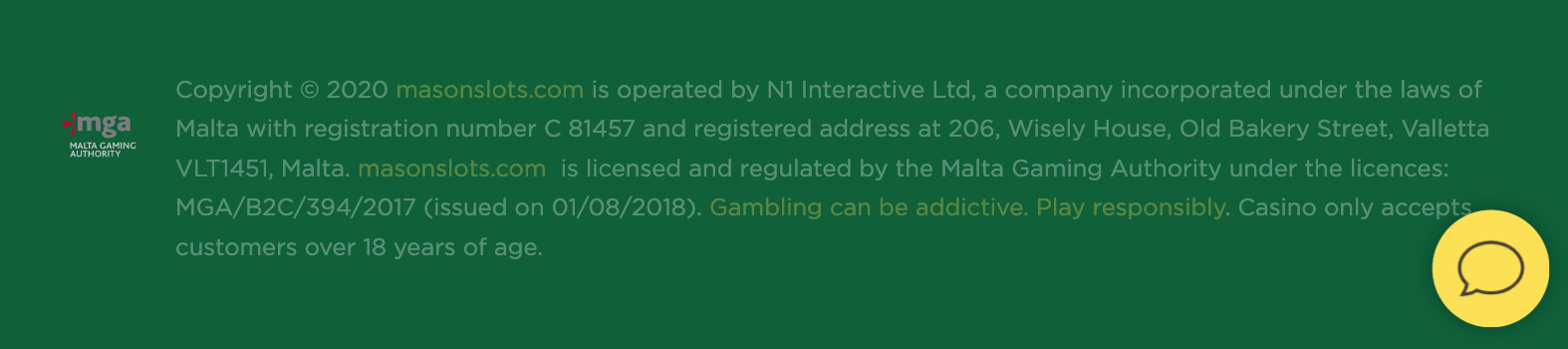 Natürlich hat Mason Casino eine gültige Glücksspiellizenz. Wenn es nicht lizenziert wäre, wäre es nicht in der Lage, Geschäfte mit Anbietern von Glücksspielsoftware abzuschließen und Bankkonten zu eröffnen. Dennoch macht es einen großen Unterschied, wer dieses Casino reguliert. Es stellt sich heraus, dass es sich um die Malta Gaming Authority handelt, und das ist großartig. Ich habe keinen Grund, an der Sicherheit von Online Casinos zu zweifeln, die von dieser Lizenzinstitution reguliert werden.